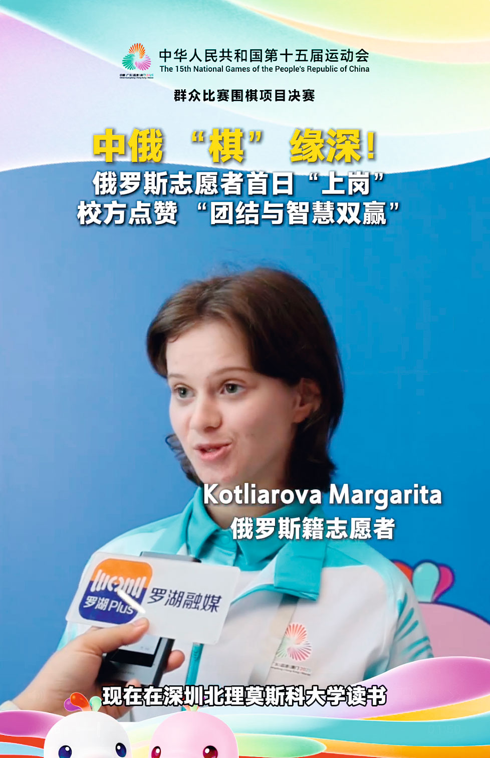 深北莫学生Kotliarova Margarita在第十五届全国运动会志愿活动中接受各个媒体采访